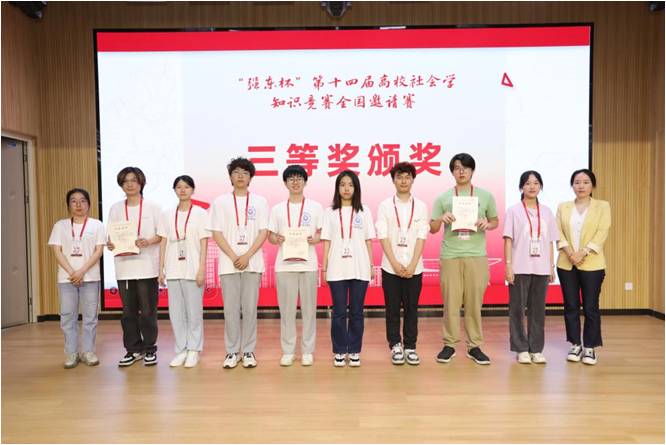 2024年5月18日,永利官网社会学代表队在第十四届“强东杯”社会学知识竞赛全国邀请赛中取得笔试成绩第一的好成绩。本届比赛由中国人民大学社会学院主办,来自清华大学、南京大学等26支全国高校代表队参赛。永利官网代表队由2020 级邵帅、2020 级黄茗、2021级杨健和2020 级罗楚怡、2021 级肖典等五位队员组成。领队为施旖旎副教授。