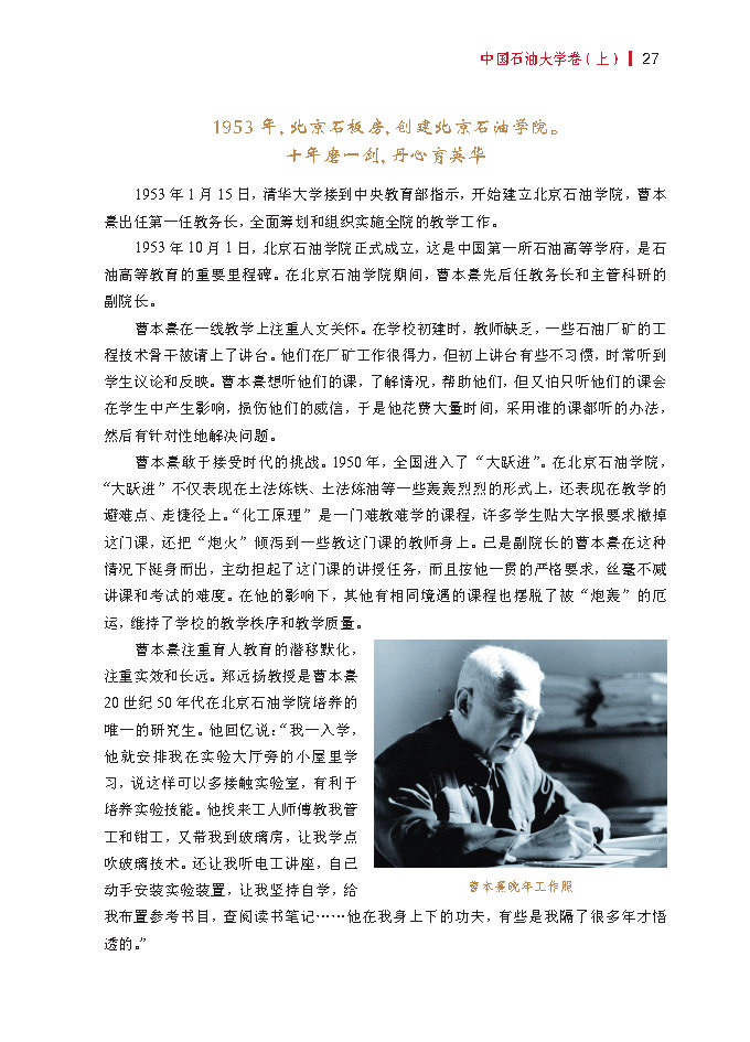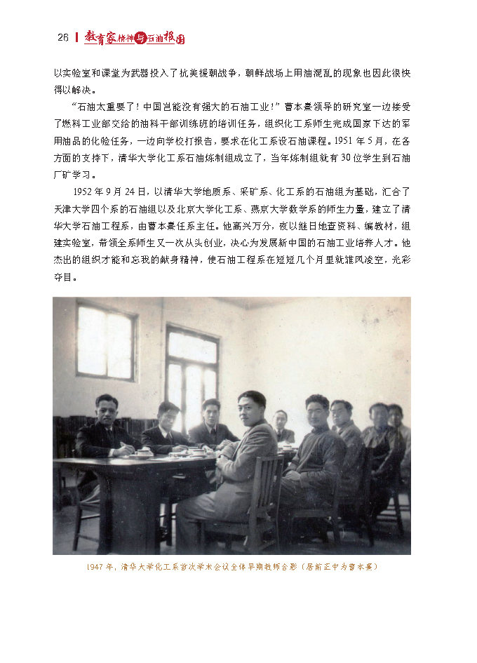 “适应石油发展的形势,就要求学院不断提高师资水平,充实和完善各课程的实验设备,提高教学水平,广泛开展科学研究,创立良好的学术空气,要使学院成为全国第一流的高等学府,具有国际水平。”