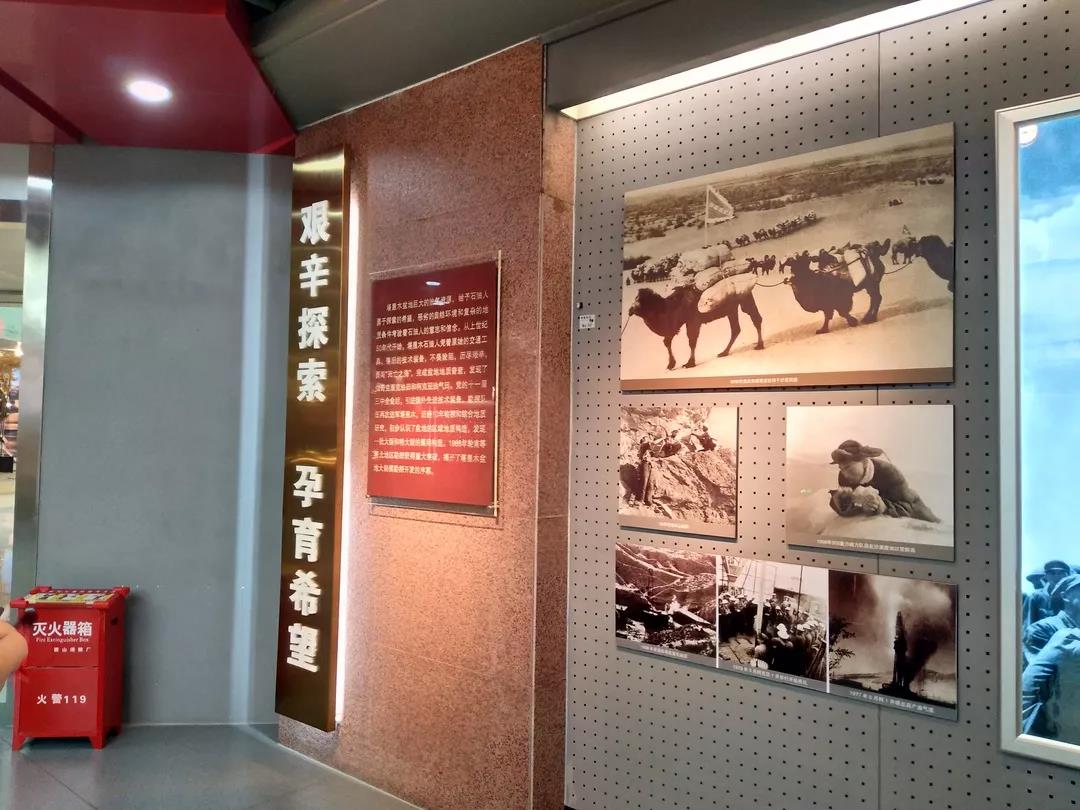 一张张珍贵的老照片反映了塔里木人的坚守,与沙漠为伴,就着风沙吃晚餐。一张石油工人满身是原油的照片令人感动不已,据讲解员介绍,原油十分难以清理,要用汽油才客气洗掉。那句“只有荒凉的沙漠,没有荒凉的人生”是塔里人的信念。在大厅放有一颗胡杨树,塔里木人正是具有的胡杨一样的品质,将青春奉献给了塔里木。