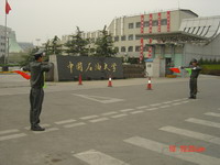 此次阿联酋客人来访,学校十分重视,我处把安保级别列为三级,并请市局文保处和昌平分局内保处的警官来我校协同参加安保工作。阿联酋客人到达我校之前,我处制定了详细的安保方案,并对北门前往翠宫的道路周边、科学馆门前以及南校园做了精心的安排,下发了临时交通管制措施的通知,并且在重要方位安排了保安队员。9日上午,欢迎仪式和合作备忘录签字仪式在翠宫报告厅举行,两位警官和我处的三名保卫干部同时在会场执行安保任务,直到活动结束。其它后续活动如与报名学生面谈、参观实验室、前往昌平清真寺等也在我处保卫干部的陪同下顺利完成。