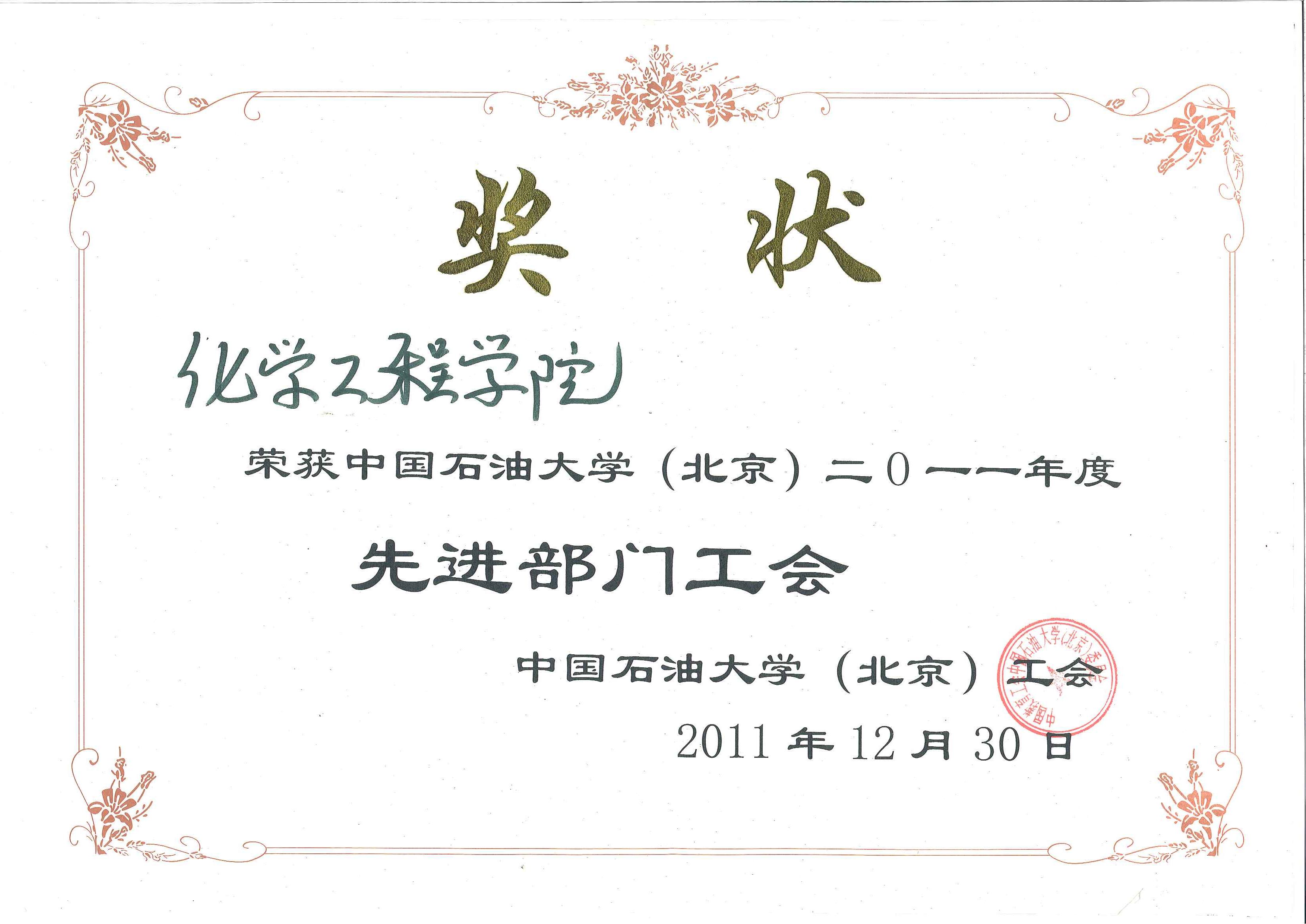 我院工会2011年获得的各项荣誉