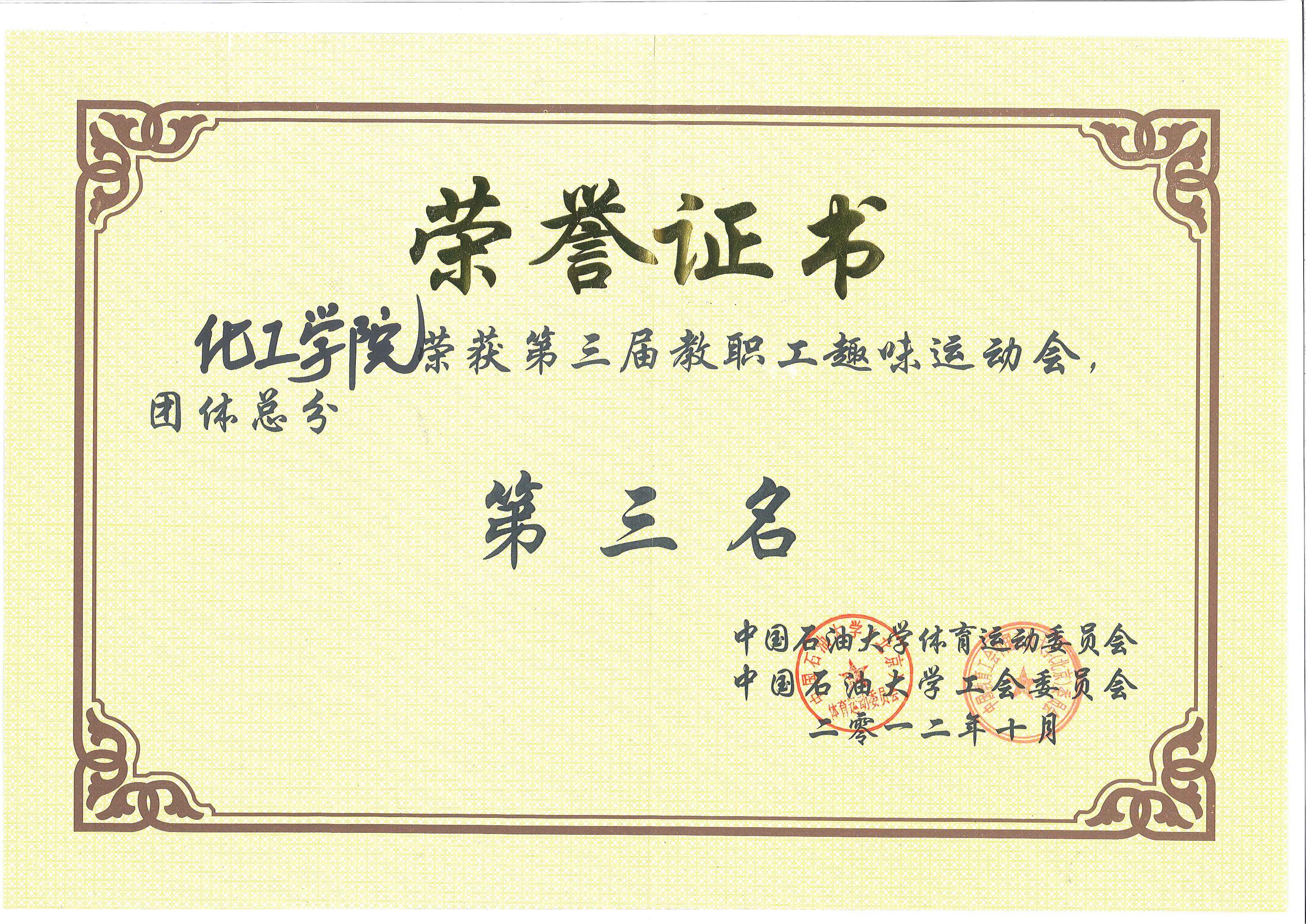 我院工会2012年获得的各项荣誉