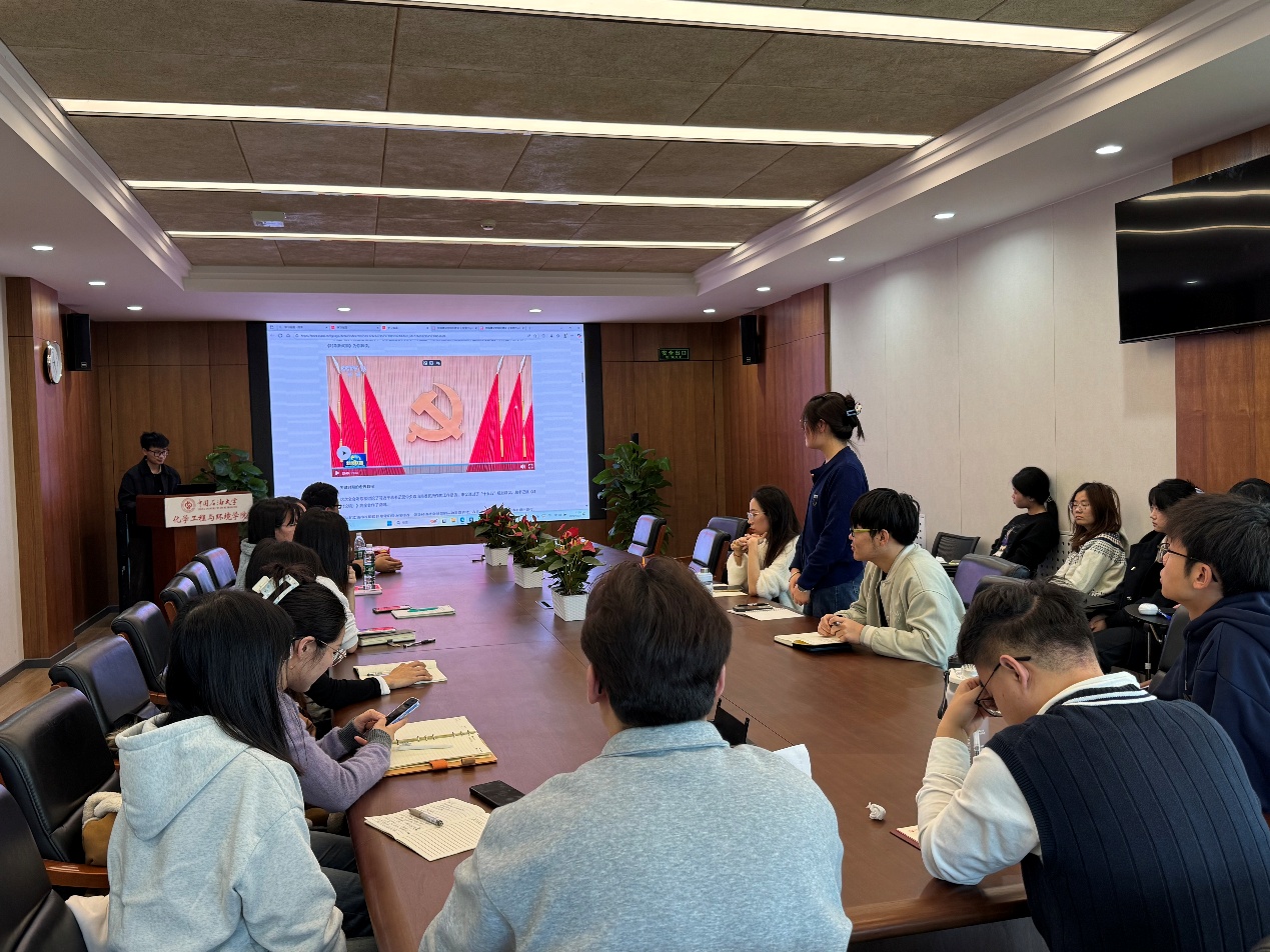为深入学习贯彻习近平新时代中国特色社会主义思想,持续创新党支部活动形式、丰富活动内涵,2025年10月25日,工艺研第五党支部与化工24-1团支部联合开展 “恰同学少年” 主题党日活动。活动特别邀请中央党校(国家行政学院)中共党史专业的王俊驰同学作专题分享,通过党团互动、理论学习、心得交流等环节,推动青年党员与团员互学互鉴,为基层组织建设注入青春动能。