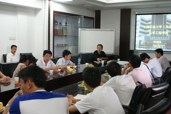 郭绪强教授首先讲述了我校发展的历史,并介绍了化工学院的基本信息、学术成果、最新的研究进展以及主要的研究方向,其中成果中介绍了包括PV旋风分离器在内的十项成果。在郭教授介绍完学院的情况后,对外校学员的生活学习情况进行了了解,并且为其解答了就办学、科研、招生等方面提出的相关疑问,进一步加深了外校同学对我校的认识和了解。
