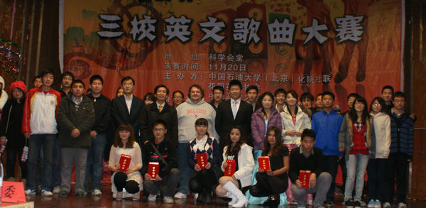 11月20日晚,第九届三校英文歌曲大赛决赛在我校科学会堂顺利举行。我校人文学院赖达富老师、外教Shawn以及往届歌曲大赛冠军等担任本次大赛评委。化工学院张延港老师出席比赛并为获奖选手颁奖。