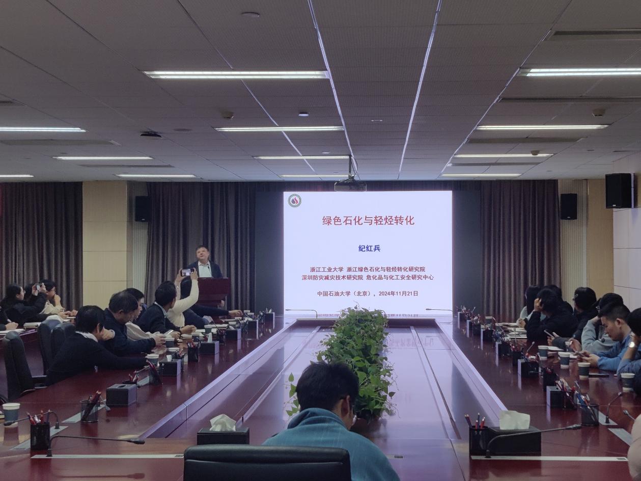 11月21日上午,“绿色石化与轻烃转化”学术报告会暨2025国家自然科学基金启动会顺利举办。本次报告由浙江工业大学教授,浙江绿色石化与轻烃转化研究院院长、深圳防灾减灾技术研究院危化品与化工安全研究中心主任,中国化工学会会士和国家重点研发计划项目首席科学家纪红兵教授主讲。化学工程与环境学院、重质油全国重点实验室、理学院等青年教师及研究生现场学习,报告会由化学工程与环境学院副院长朱文帅主持。