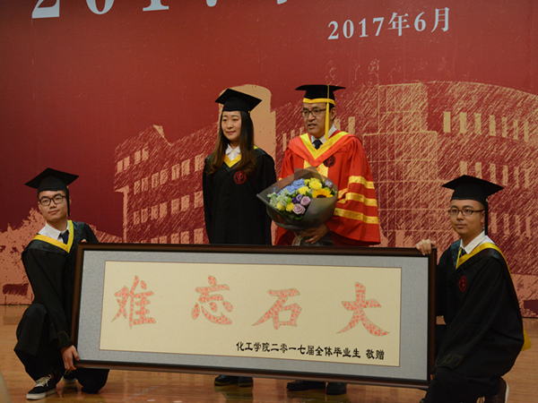 最后,全体起立,齐唱“我为祖国献石油”,在嘹亮的歌声中化学工程学院学位授予仪式圆满落下帷幕。