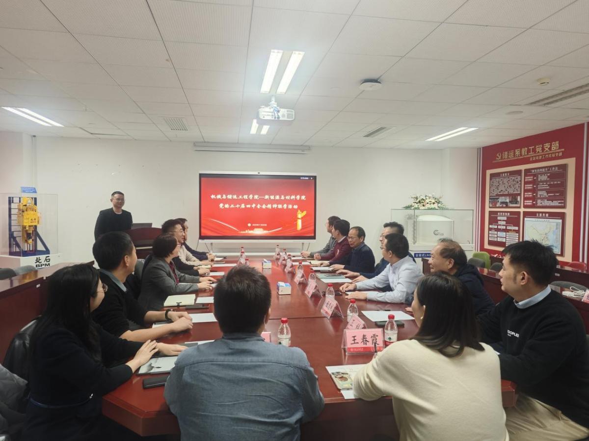 为深入学习贯彻党的二十届四中全会精神,促进学科交叉融合,共同服务国家能源战略需求,新能源与材料学院与机械与储运工程学院于2025年11月20日下午在主楼B921会议室成功举办党的二十届四中全会精神联学活动。会议由机械与储运工程学院党委书记刘洪洋主持。新能源与材料学院党委书记陆雅莉、院长李永峰及双方院领导班子、系主任、党支部书记和教授代表出席会议。