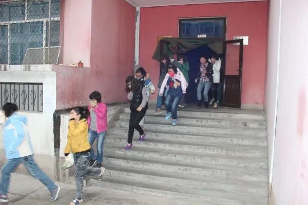 2013年11月9日,学校组织学生进行消防疏散演练。