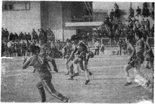 他们胜利地实现了学校党委的号召,在1957年和1958年北京市两次足球甲级联赛中蝉联亚军,同时还曾多次参加全国足球对抗赛。1960年北京市足球甲级联赛前夕,我院足球队中虽有很多队员在前期比赛中受伤,但他们仍以“轻伤不下火线”的顽强战斗精神要求自己,毅然要求上场,最终夺关闯隘,全队勇获冠军。