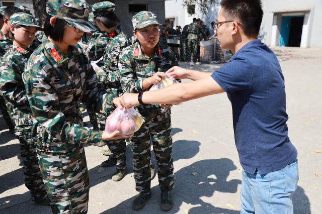 于迎辉副书记亲自为同学们发放了慰问品,在详细询问并了解学生基本情况后,提出了两点希望与要求。一是要尽快成长,在学会独立的同时,保留一份天真,要努力让这片赤子伴随自己的一生。二是希望同学们能借助这次的军营生活,尽快熟悉彼此,在训练的过程中互相扶持,享受并珍惜此次为数不多的集体生活。于迎辉副书记还嘱咐学生们,不同的人生阶段总会经历些许阵痛,这种阵痛过后就是成长。而后,于迎辉副书记安抚了学生们的思乡情绪,并衷心祝愿同学们顺利完成本次军训。