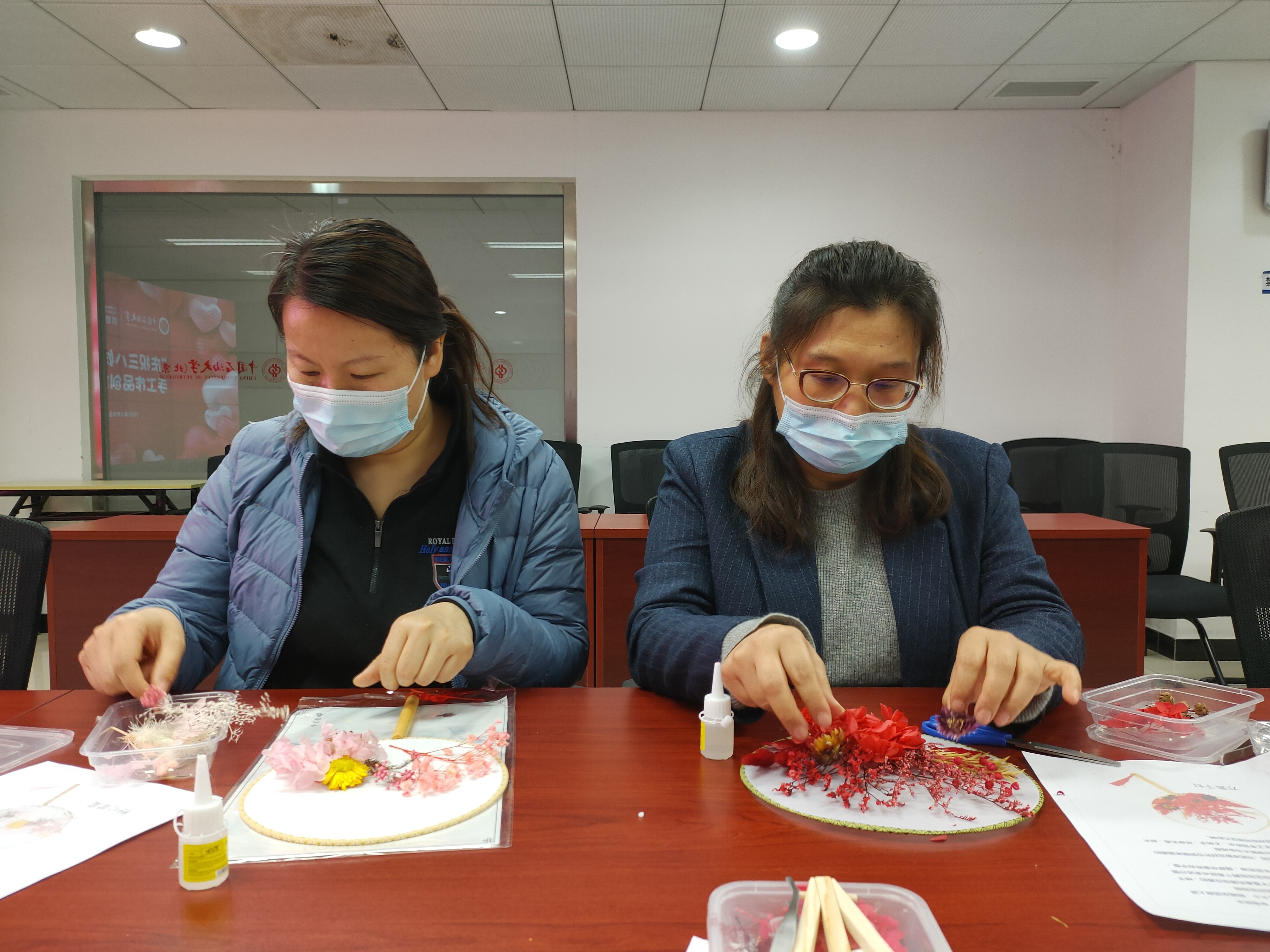 为庆祝第112个“三八”国际劳动妇女节,丰富女教职工的文化生活,营造浓厚节日氛围,3月8日中午,学院在主楼B1421开展“庆祝三八妇女节”教职工手工作品创作活动,来自学院各单位的部门女教职工参加了活动。