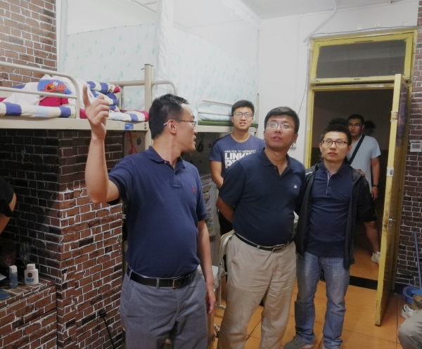 6月4日晚21:00,院长刘伟峰、党委副书记董艳军、于迎辉及全体学生辅导员深入学生宿舍,检查宿舍安全问题,了解学生宿舍学风养成情况。检查组先后到润杰公寓、阳光公寓和汇才公寓的信息学院本科生及研究生学生宿舍进行走访检查,检查组详细检查各宿舍电器使用情况,提醒同学们注意用电安全、宿舍卫生、正确使用空调以及财产安全和人身安全等问题,对存在的安全隐患要及时整改到位。在检查中,检查组询问了同学们学习生活情况,叮嘱学生要加强沟通交流,共创宿舍和谐氛围。