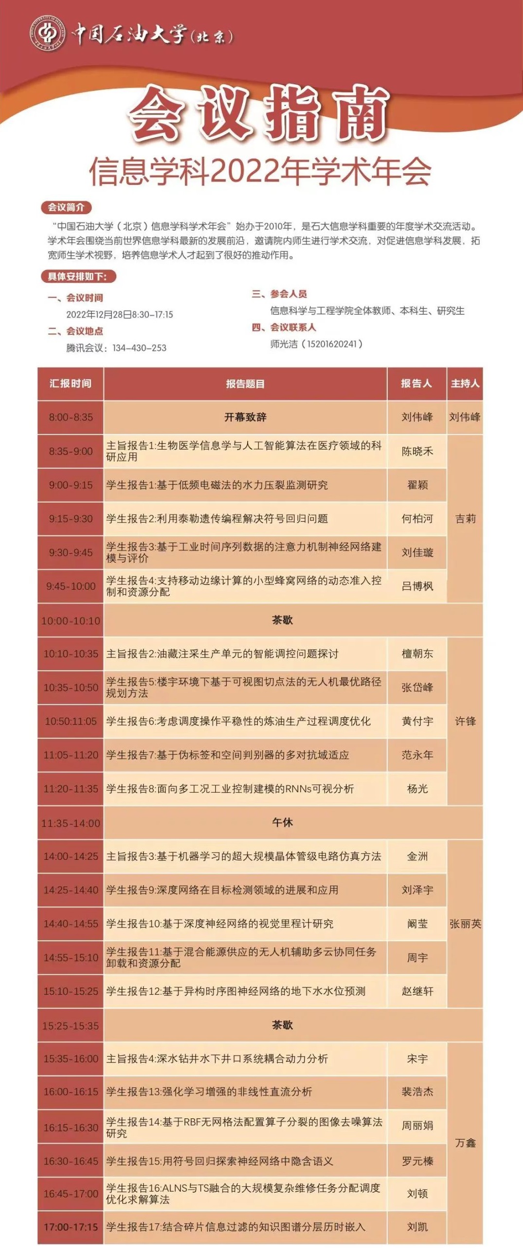 12月28日,“开云kaiyun官方网站(北京)2022年信息学科学术年会”通过线上会议平台举办,300余名学院师生线上参加会议,院长刘伟峰担任开幕式主持人并致辞。