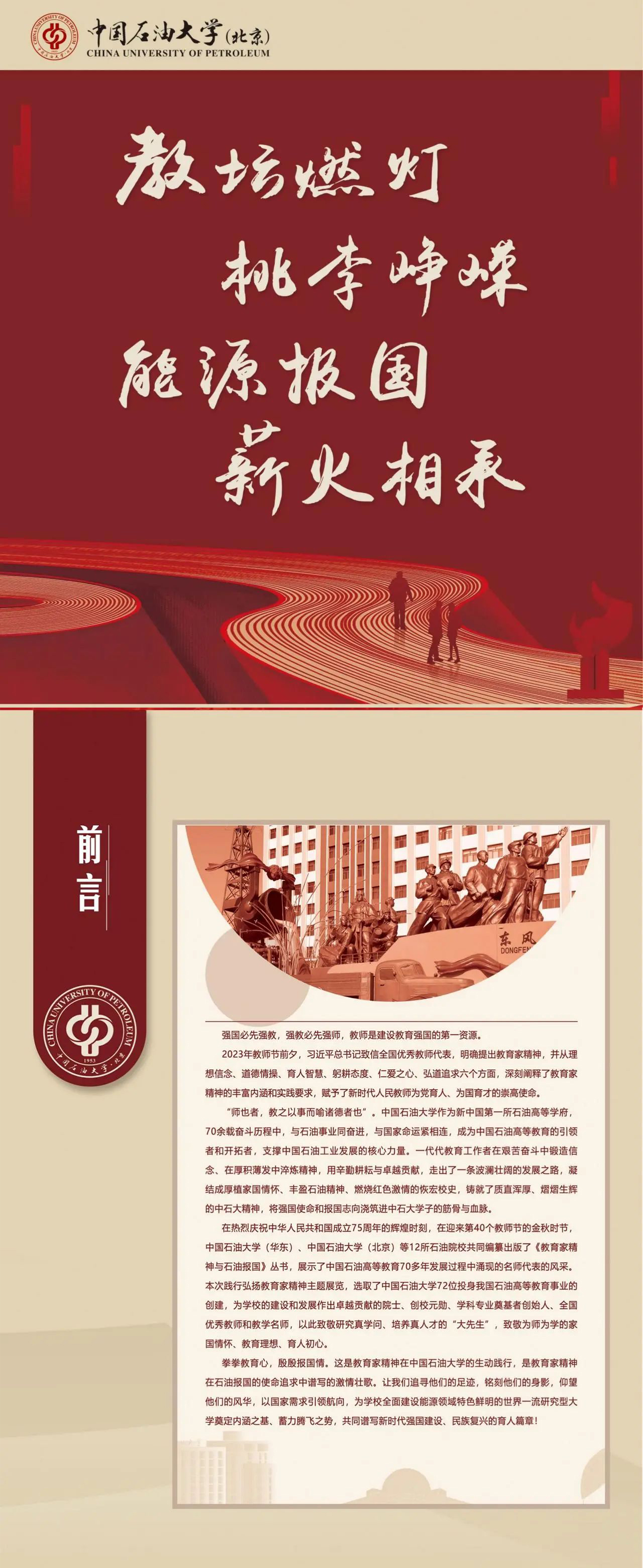 “教坛燃灯 桃李峥嵘 能源报国 薪火相承”