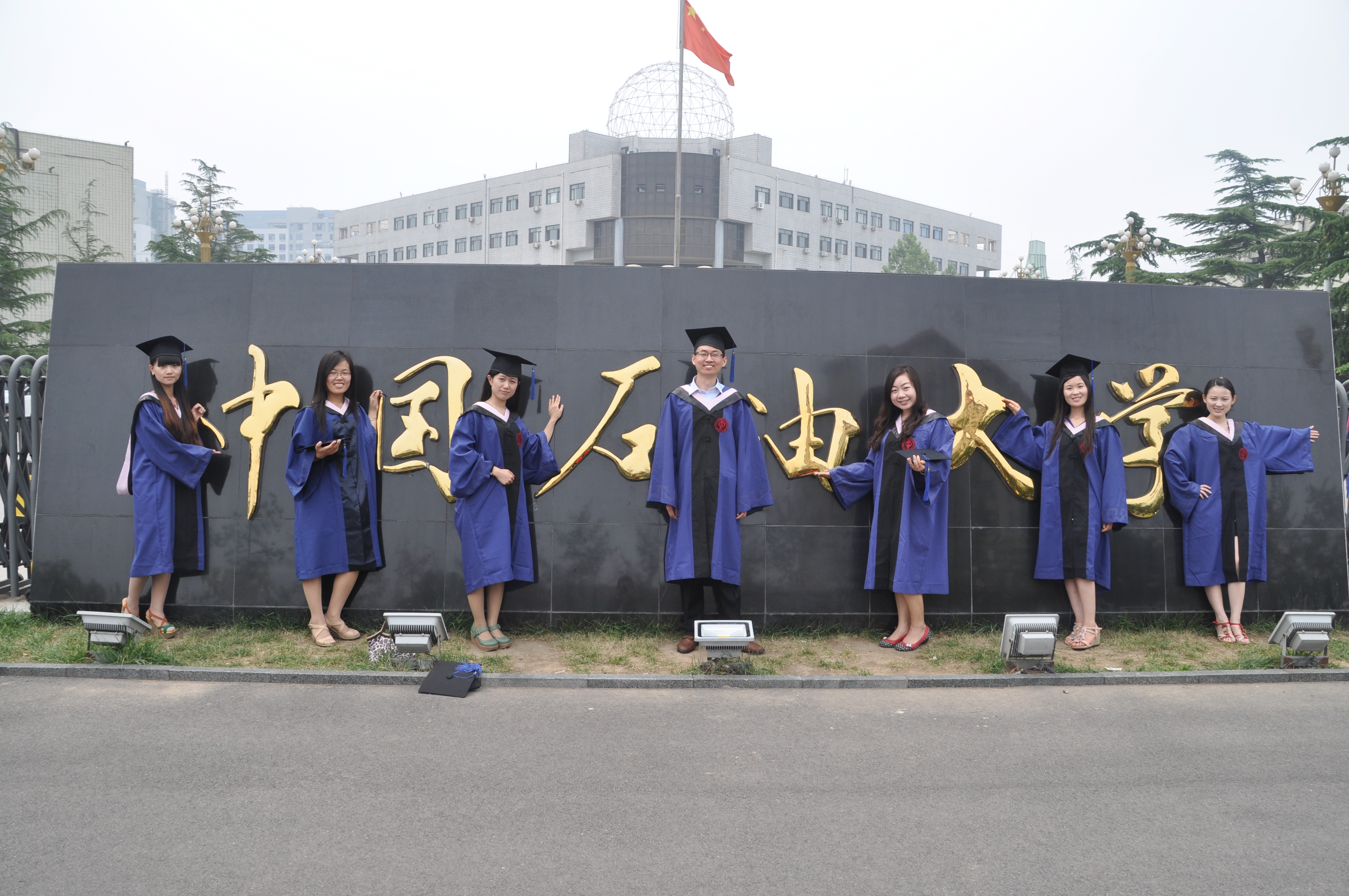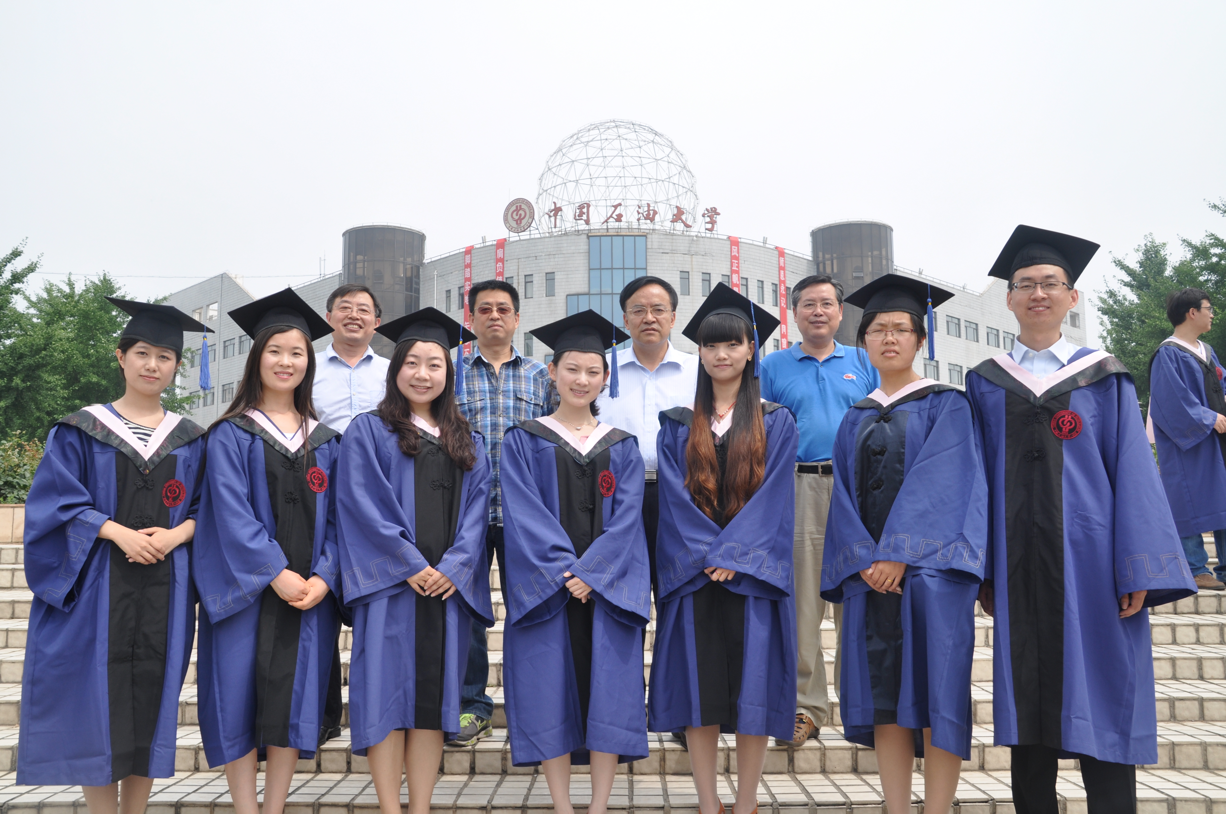 6月19日,高等教育学2012级硕士毕业生身着学位服与导师合影留念。