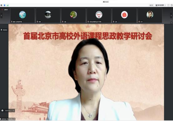 在首届北京市高校外语课程思政教学研讨会上,赵院长作为点评专家对兄弟院校的外语课程思政实践做了精彩的点评。她用“实”、“全”、“特”三个字精辟概括了外语课程思政工作的特点,强调了外语课程思政要将思政目标与传统教学完美融合,“做正确的事,正确地做事”。同时,赵院长提出倡议,希望北京高校之间要通过高校外语课程思政联盟加强沟通,互相学习,资源共享,共同进步。