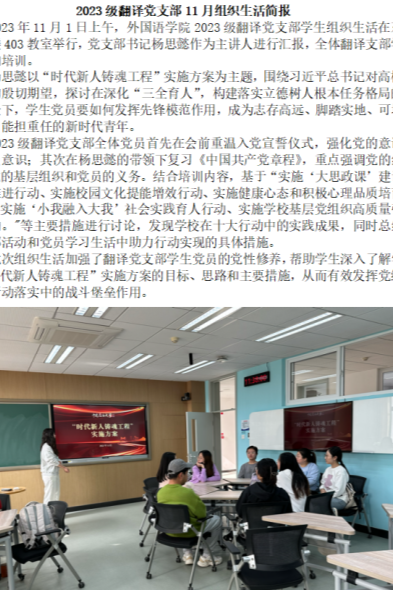 构建“主要领导带头讲,分管领导示范讲,支部书记必须讲,普通党员积极讲”的组织生活学习体系,要求领学人讲前研读,吃透精髓要义,制作讲解PPT,切实破解学的不深、学的不专、学用脱节等问题,并根据学校的相关要求与安排,每月为学生党支部制定切合实际的学习计划,以理论研讨与实际工作结合促进党建与业务发展深度融合,推动理论学习成果转化为解难题、促发展的强大动力。