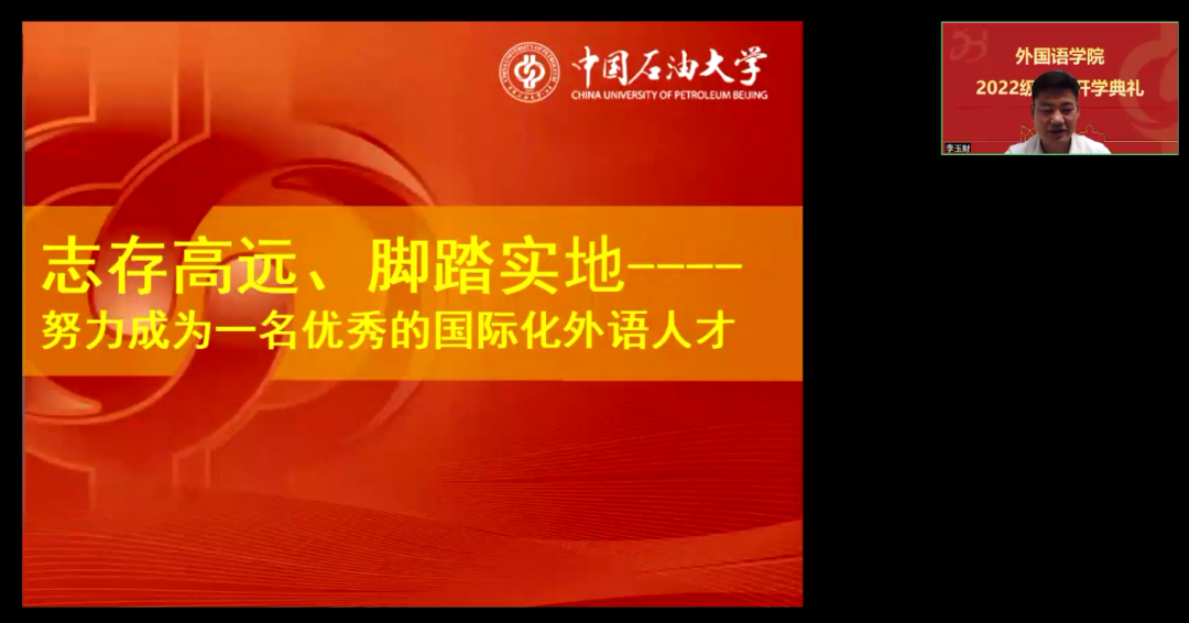 2022年9月22日下午,外国语学院于线上召开2022级新生开学典礼暨新生思政课。学院领导、教师代表以及2022级全体新生参加此次活动。典礼由学院党委副书记刘春阳主持。