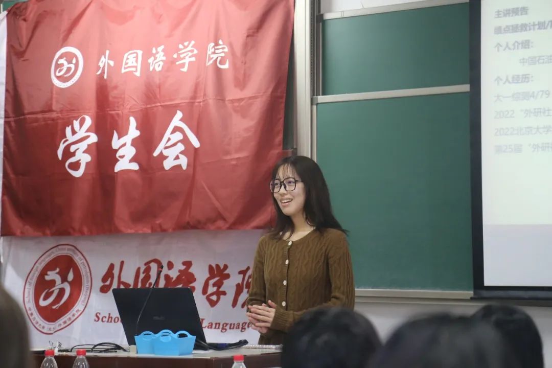 舒轶曾任外国语学院的学生会主席,她就学习、生活和工作协调问题以及一些考研政策进行分享。