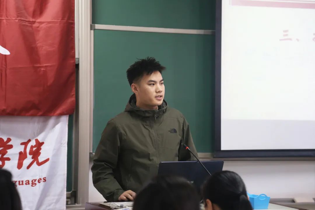范其乐主要围绕英语专业的学习计划制定、具体课程的学习方法和缓解压力的小技巧等进行分享。