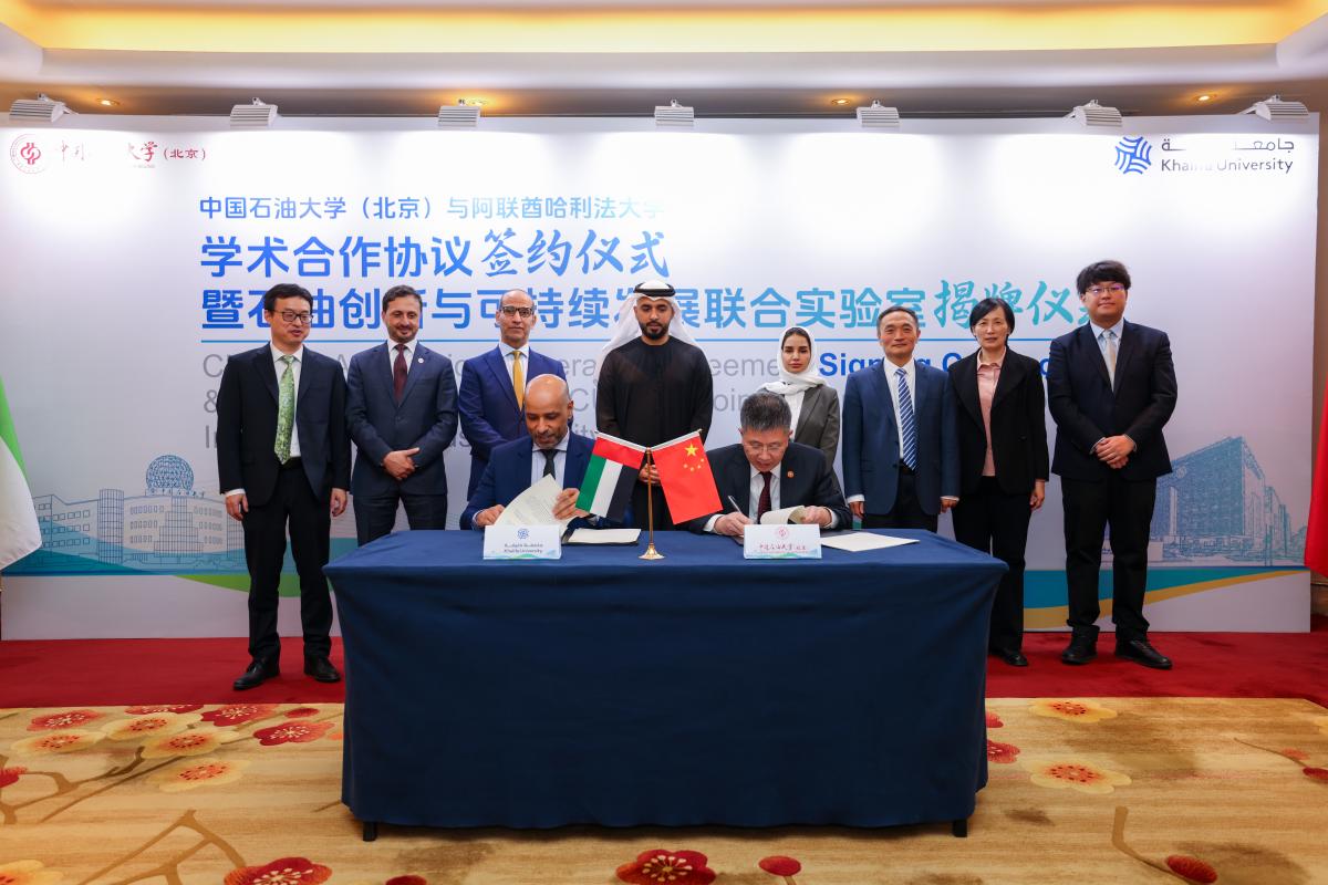 On April 7th, China University of Petroleum (Beijing) and Khalifa University held a signing ceremony for a new academic cooperation agreement, alongside the unveiling of the CUP-KU Joint Laboratory for Petroleum Innovation and Sustainability in Beijing. Jin Yan, President of China University of Petroleum (Beijing), and H.E. Ebrahim Al-Hajri, President of Khalifa University, attended the event. H.E. Khaled Alshehhi, Acting Ambassador of the United Arab Emirates to China, was also present to witness the signing and unveiling.
