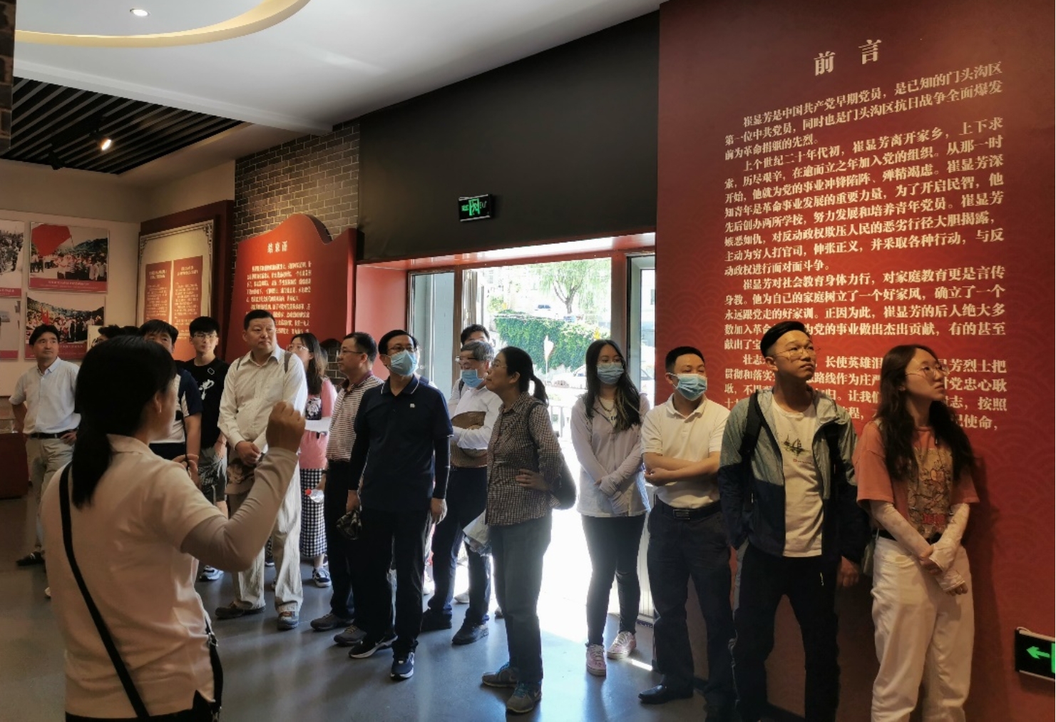 师生们首先抵达北京市门头沟区雁翅镇田庄村“京西山区中共第一党支部”,在当地讲解员的带领下分别参观了京西山区中共第一党支部纪念馆和崔显芳烈士纪念馆,了解京西中共基层党组织在土地革命、抗日战争和解放战争的腥风血雨中酝酿、创建、发展和成长的革命历程,聆听京西山区第一位共产党员崔显芳的生平事迹、革命生涯及崔氏家族一门四烈士的英雄事迹。后师生们又赴田庄高小党支部旧址和崔显芳故居,通过参观京西山区第一个中共党支部的所在地,以及崔显芳烈士的生活环境样态,深入学习当时的革命星火在京西点燃的历程。