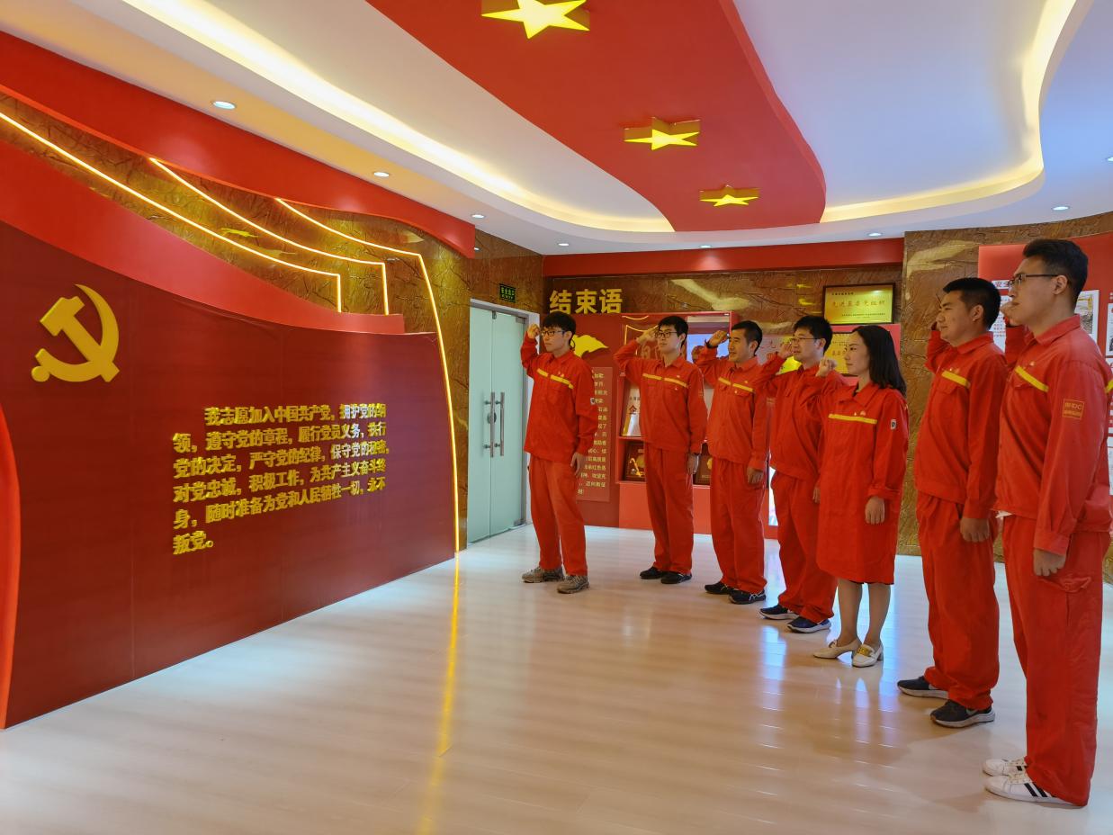 随后在入党誓词墙前,在“精铸匠心”开发地质导学团队党支部副书记屈林博的带领下,一行师生重温入党誓词,面对党旗,庄严宣誓!