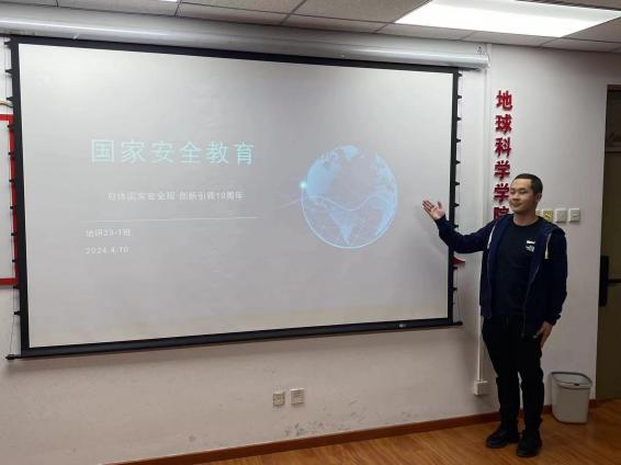 各班级开展国家安全教育主题班会,通过组织学生观看“千万高校学生同上一堂国家安全教育课”的公开课。使同学们增强辨别危害国家安全的能力,清楚国家安全是国家生存与发展的重要保障、人民幸福安康的前提。呼吁大家在发现有危害国家安全的行为时及时向国家相关机关举报,保守国家秘密,为国家的安全和稳定发展贡献自己的一份力。地质类23-3团支部于4月10号以国家安全教育为主题进行团课宣讲,向同学们展示了国家安全的重要性。地研23-1班全体同学于2024年4月11日在地质楼1101举行“总体国家安全观·创新引领10周年”活动,认真学习习近平总书记关于加强国家安全教育的重要指示批示精神。地质类23-2团支部于4月14日开展了国家安全教育日的团日活动,向同学们讲述了什么是国家安全,如何从个人角度保护国家安全等知识点。