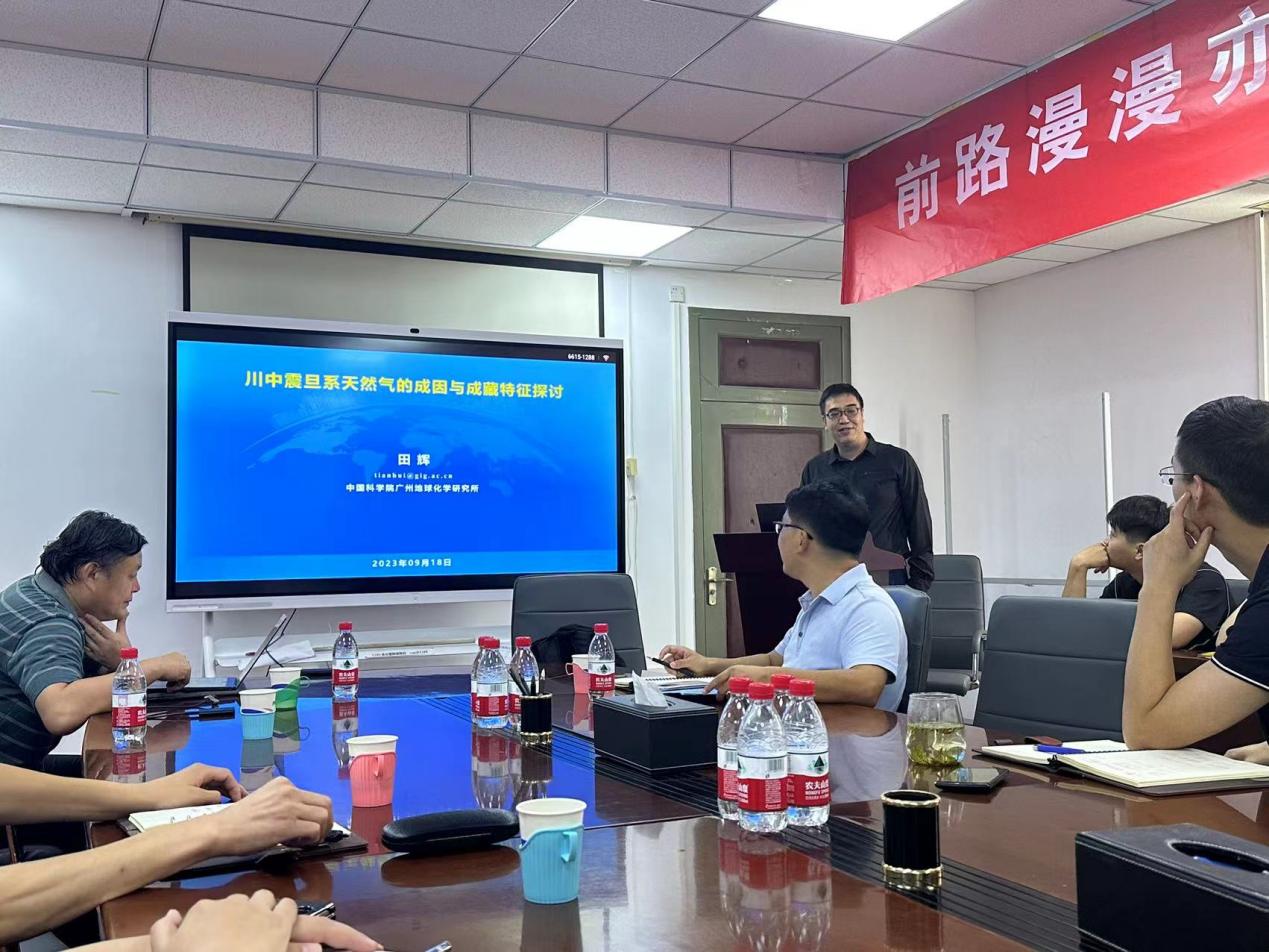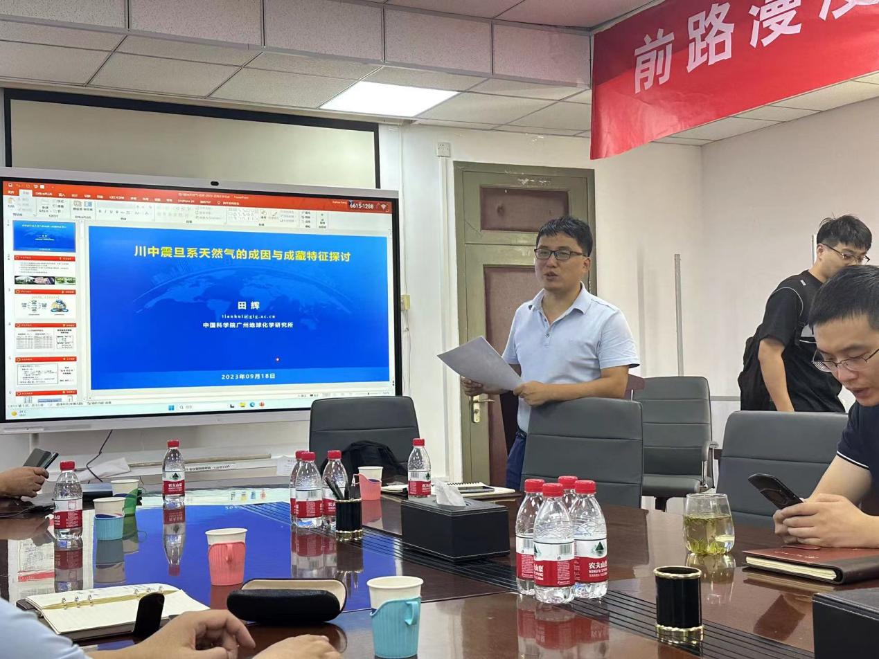 田辉研究员开展了题为“川中震旦系天然气的成因与成藏特征探讨”的学术报告,以四川盆地安岳气田为重点靶区,认为川中磨溪-高石梯震旦系天然气属于原油裂解气与干酪根裂解气的混合气,三类甲烷包裹体记录了古油气的形成过程,证实震旦系古气藏形成时为半开放体系,认为非古油藏发育区仍有可能发现气藏,为四川盆地震旦系天然气勘探与开发提供地质依据。