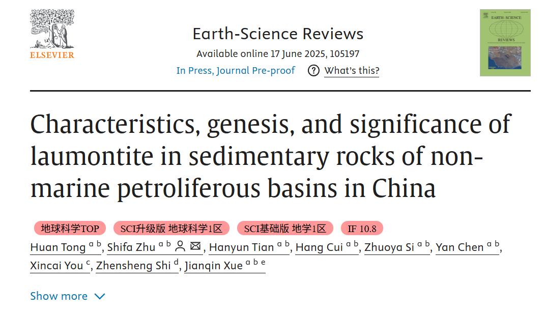 该研究成果《Characteristics, genesis, and significance of laumontite in sedimentary rocks of non-marine petroliferous basins in China》发表在地学著名期刊《Earth-Science Reviews》上。论文通讯作者为朱世发教授,第一作者为我院2023级博士研究生佟欢,开云kaiyun官方网站(北京)油气资源与工程全国重点实验室和地球科学学院为第一完成单位。
