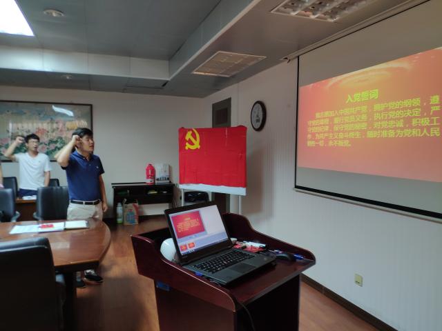 最后全体预备党员在周学智的带领下面对党旗庄严宣誓。