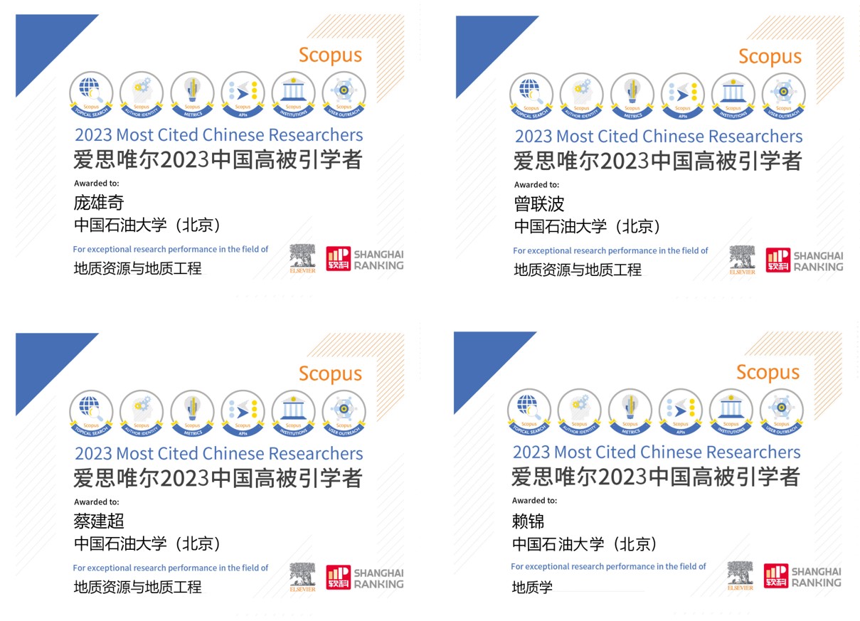 2024年3月27日,爱思唯尔(Elsevier)重磅发布2023“中国高被引学者”(Highly Cited Chinese Researchers)榜单。来自496所高校、企业及科研机构的共计5801人入选,覆盖了教育部10个学科领域、84个一级学科。其中,开云kaiyun官方网站(北京)共有20名学者入选,我院庞雄奇教授、曾联波教授、蔡建超教授和赖锦老师入选此次榜单。
