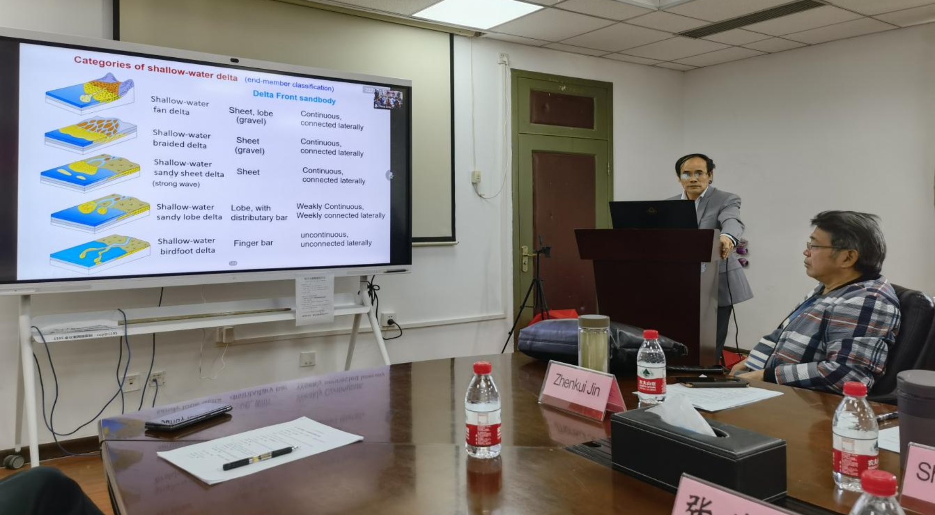 本次大会共设立1个主会场、11个分会场。大会报告期间,我校地球科学学院吴胜和教授做了题为“Depositional architecture of shallow-water delta in lacustrine basin”的学术报告(图4),介绍了陆相沉积盆地浅水三角洲沉积构型领域的最近研究进展与成果。青年教师张佳佳获评大会“青年优秀论文奖”,并代表“青年优秀论文奖”获奖代表在大会闭幕式发言。