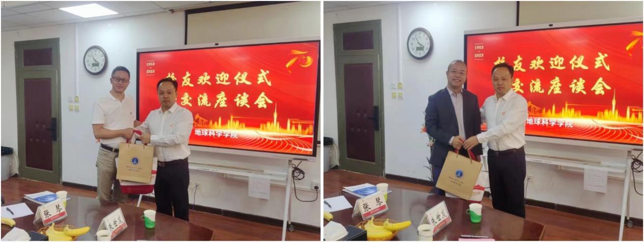 会后,刘钰铭带领本93级校友参观了地学院70周年发展成就展,校友对学院的双一流学科和全国党建标杆备受鼓舞和感动,对学院70周年取得的成就感叹不已。