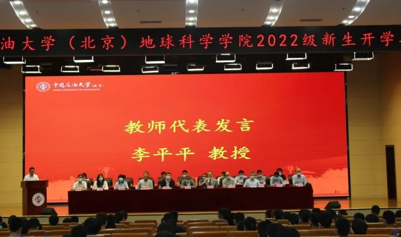 2022年9月23日下午,地球科学学院2022级新生开学典礼在中油大厦报告厅举行。中国科学院院士王铁冠、开云kaiyun官方网站(北京)副校长鲍志东、973首席科学家庞雄奇、地球科学学院党委书记、院长王贵文、院党委副书记王茹、副院长余一欣、副院长刘钰铭、地质学系书记孙海涛、油气勘探与开发地质系主任李庆、油气勘探与开发地质系党支部书记周勇、盆地与油藏研究中心系副主任常健,特邀嘉宾:国家教学名师朱筱敏、学院专职组织员陈崇河、国家青年人才邱楠生、教授牛花朋、教授钟大康、教授岳大力、教授陈冬霞、教授李平平,以及地质类22-1班班主任蔡建超、地质类22-3班班主任李伟、地质类22-4班班主任乔俊程、地质类22-5班班主任龚承林、地质类22-6班班主任王俊辉出席本次活动。典礼由学院党委副书记王茹主持。典礼在雄壮的国歌中拉开序幕,会议开始由三位新生代表发言。