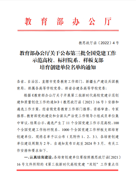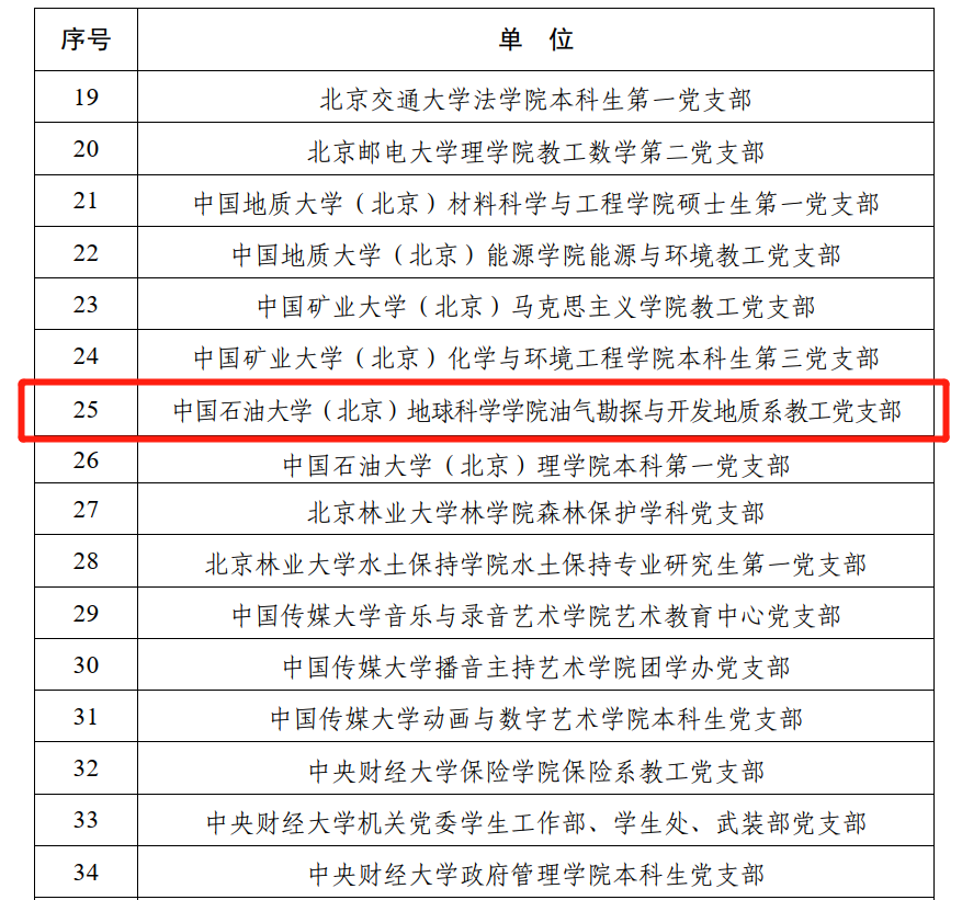 近日,教育部办公厅印发《关于公布第三批全国党建工作示范高校、标杆院系、样板支部培育创建单位名单的通知》(教思政厅函〔2022〕4号),开云kaiyun官方网站(北京)地球科学学院油气勘探与开发地质系教工党支部入选第三批“全国党建工作样板支部”培育创建单位名单,建设周期为2022年3月至2024年3月。