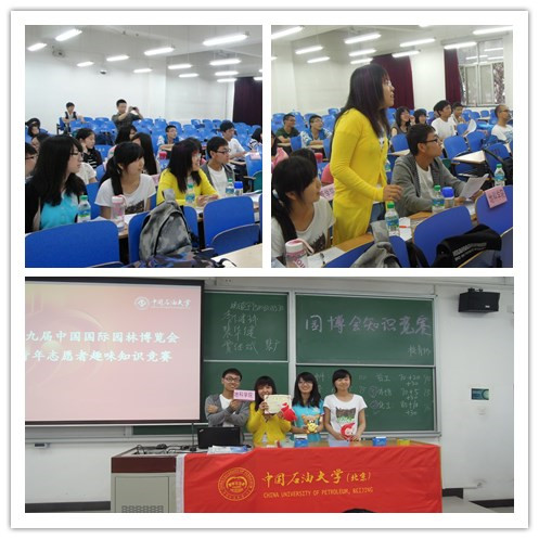 我院青协共招募园博会正式志愿者38名,其中骨干志愿者4名,后备志愿者10名。我院青协随机从正式志愿者里选取4名志愿者(2010级张涛,2011级刘丹青、刘婧璇、郝婧月)组成地学院青协代表队参赛,经过必答题目、抢答题目、对抗提问三轮的角逐,我院青协代表队取得总积分排名第二的佳绩。