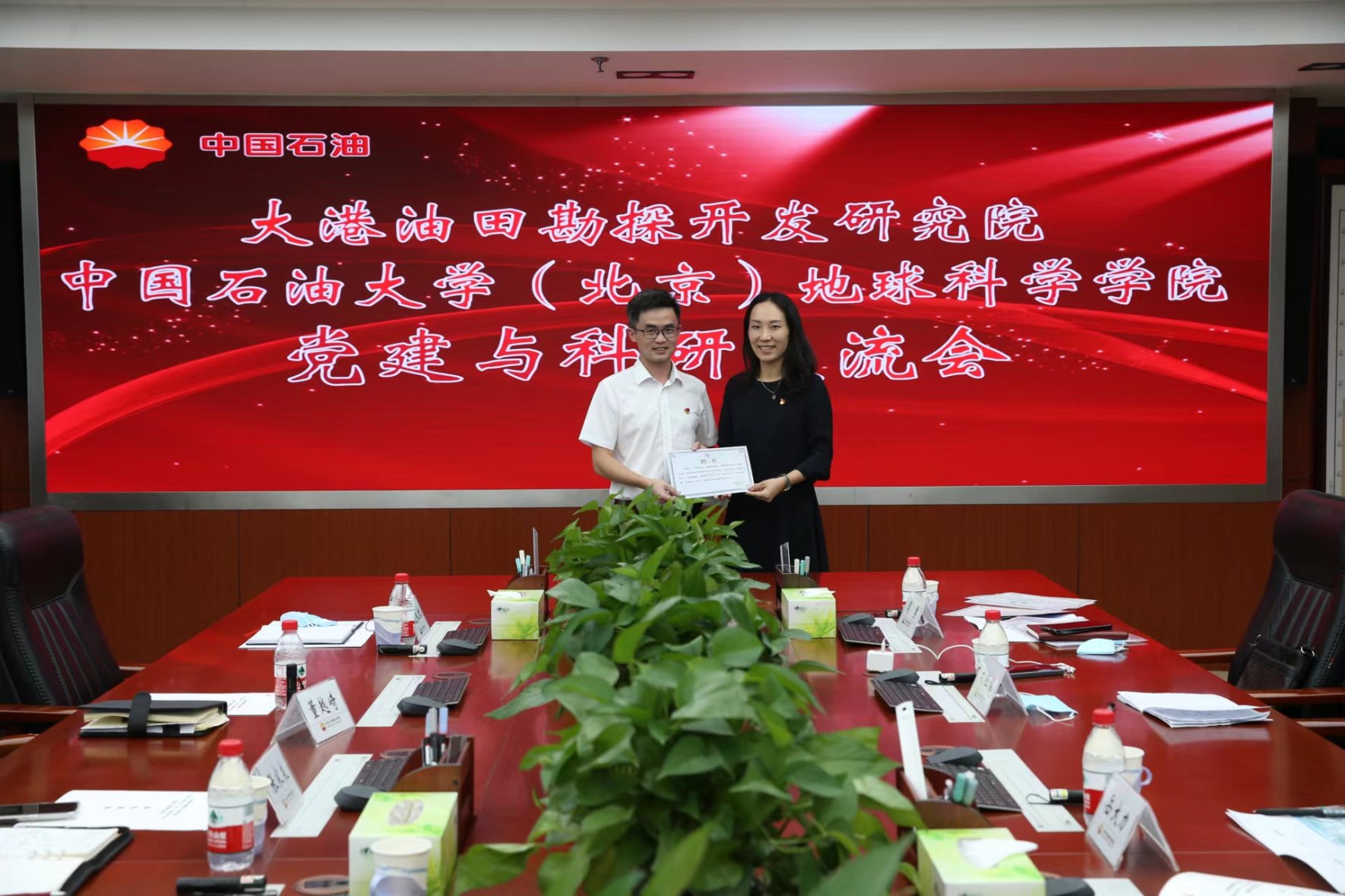 地球科学学院党委副书记王茹围绕“强党建、抓思想、促发展、创一流”介绍了学院党建和思想政治工作基本概况和特色工作,就高质量党建引领学科发展和人才培养的抓手和做法进行分享交流,并对进一步推动校企深度多维合作进行展望。勘探开发研究院党委组织科科长、机关党支部书记吴佳朋,从党建工作与高质量发展一体化部署、一体化推进、一体化考核三方面系统阐述研究院深入推进基层党建“三基本”建设与“三基”工作有机融合情况,促进目标相融、过程相融、结果相融。