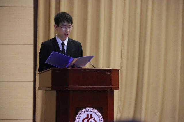 地质学系主任鲜本忠引导新生要将个人的成长与国家的需求紧密结合,将今天开始的学业、选择的专业和毕业后从事的职业紧密结合;资源勘查工程2019级新生朱千瑞代表本科新生发言,立志在大学中找好位置、端正态度、苦练技能、不懈奋斗;地学院2019级研究生王欣代表研究生新生发言,倡导大家以服务国家能源战略需求为己任,为我国石油工业贡献自己的青春力量;资源勘查工程2017级王思聪代表在校生发言,分享作为地质人勤于实践的大学生活,并祝愿新同学能用专业知识感应过去、用实际行动成就未来。
