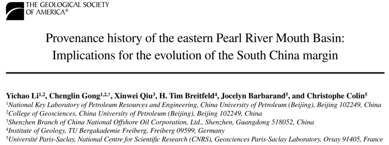 近日,我校地球科学学院博士生李一超,在龚承林教授指导下,与中海油深圳分公司邱欣卫博士、德国弗莱贝格工业大学H. Tim Breitfeld博士、法国巴黎萨克雷大学Jocelyn Barbarand教授和Christophe Colin教授合作完成的研究成果《Provenance history of the eastern Pearl River Mouth Basin: Implications for the evolution of the South China margin》发表在地学领域著名期刊《GSA Bulletin》上(见下图)。论文第一作者为我院博士生李一超,通讯作者为龚承林教授,开云kaiyun官方网站(北京)油气资源与工程全国重点实验室和地球科学学院为第一完成单位。《GSA Bulletin》是地球科学领域的中科院一区top和JCR Q1期刊,具有重要的学术影响力,五年平均影响因子为4.1。