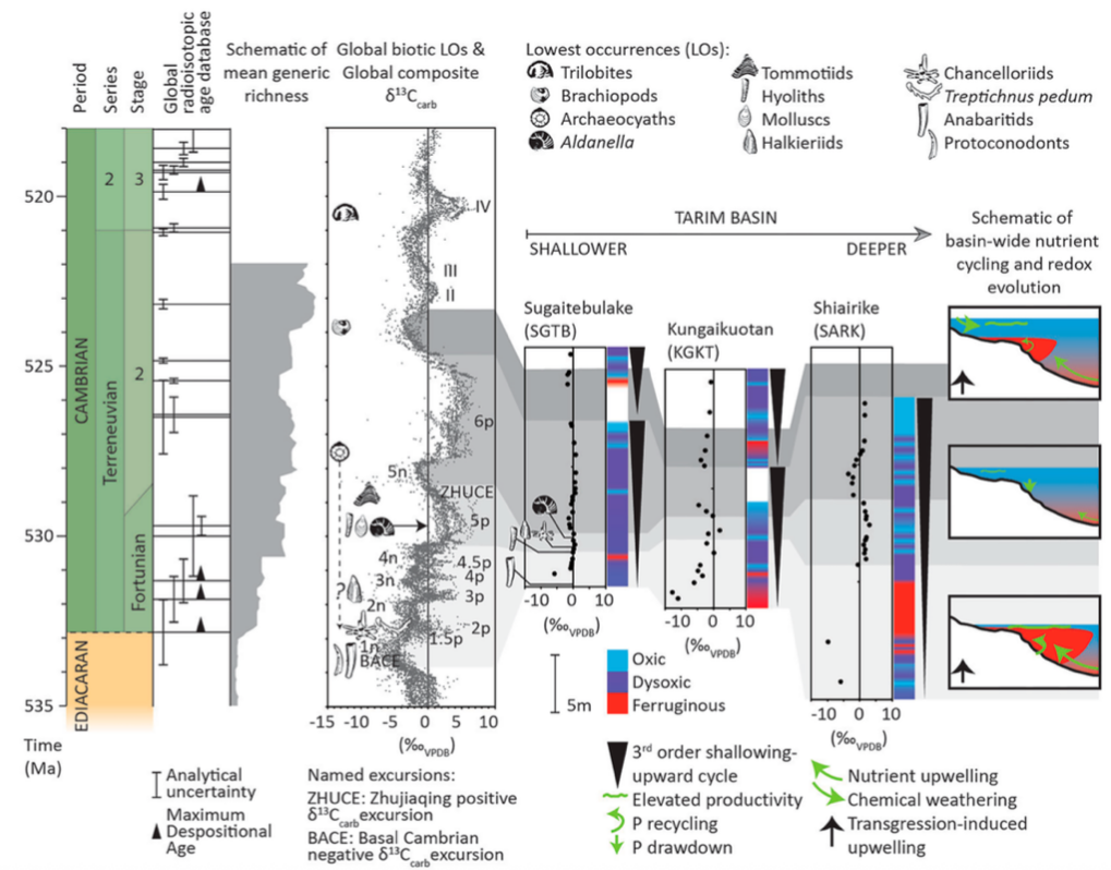 这两项成果共同告诉我们一个更完整的故事:寒武纪生命大爆发并非发生在简单的“高氧”环境中,而是发生在一个由海平面变化驱动、磷循环精密调控的动态系统里(图4)。