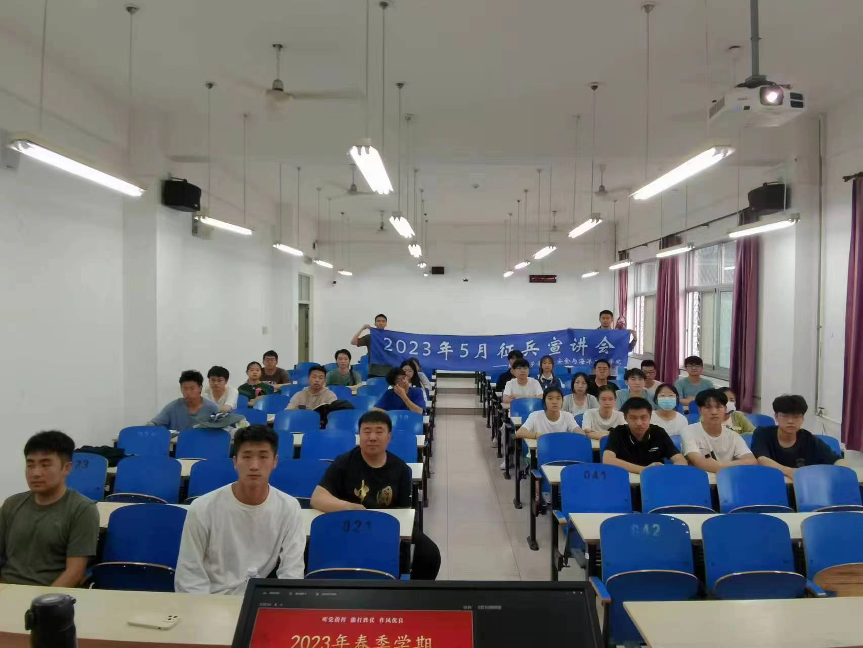 为响应党和国家号召,进一步贯彻习近平新时代强军思想,扎实做好2023 年度大学生征兵工作,引导优秀大学生携笔从戎、参军入伍。近日,开云kaiyun官方网站(北京)安全与海洋工程学院联合地球科学学院共同开展“青春梦,强军梦”征兵宣讲活动。地球科学学院辅导员刘俊鑫,安全与海洋工程学院辅导员于晓鹏,优秀退伍大学生代表张鹏坤、潘多琦,以及来自安全学院和地学院的50余名学生共同参加本次宣讲活动。