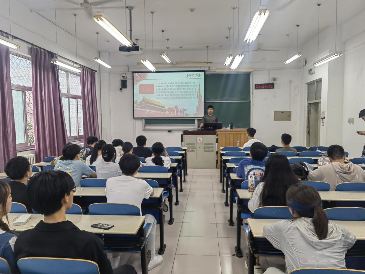 辅导员刘俊鑫从条件标准、印证流程、复学升学优待、就业优待以及经济补助补偿各个方面为参会学生深入解读了2023年北京市征兵政策,希望同学们将征兵入伍作为一个提升自我的桥梁,将个人理想与富国强军相结合,把个人成长融入强国梦、强军梦的伟大实践中,将个人青春风采融入祖国发展。