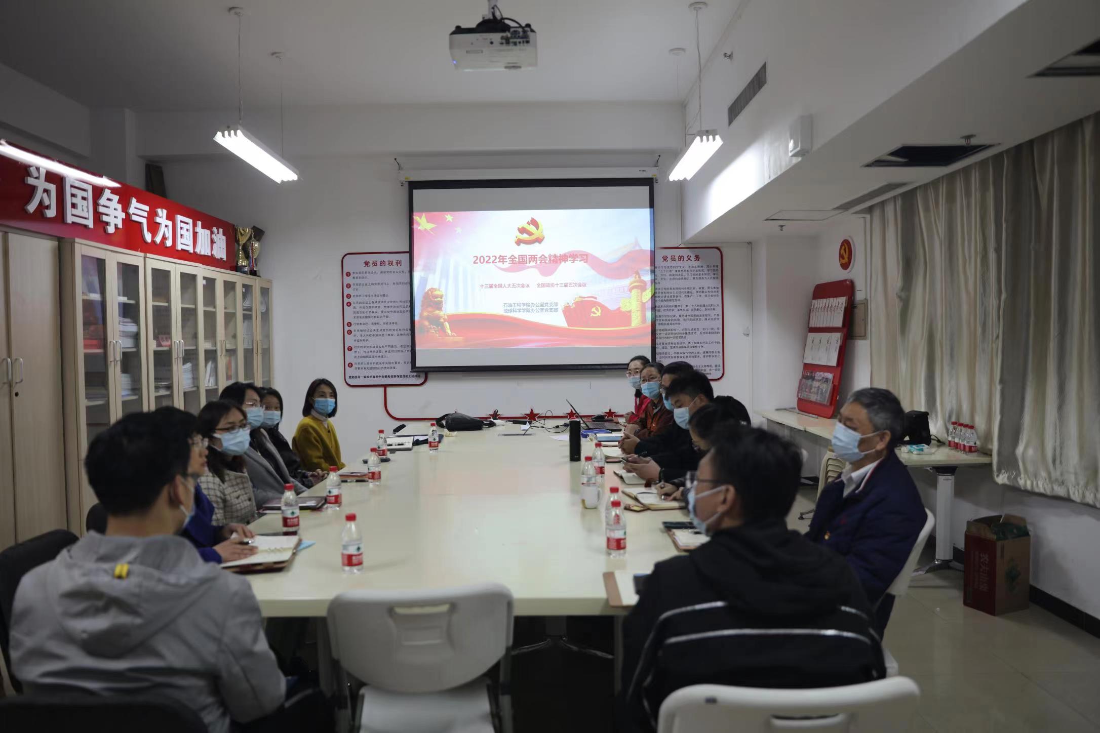 2022年4月7日下午,地学院办公室党支部与石油工程学院办公室党支部在中油大厦107会议室进行了4月份教职工组织生活联合学习活动。