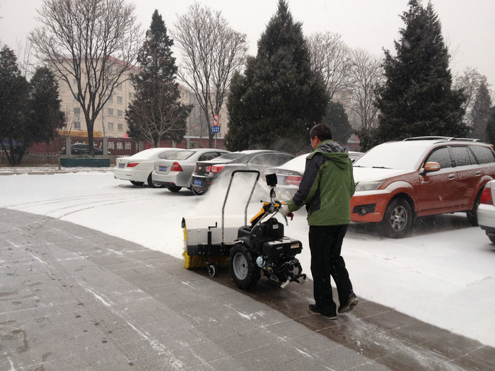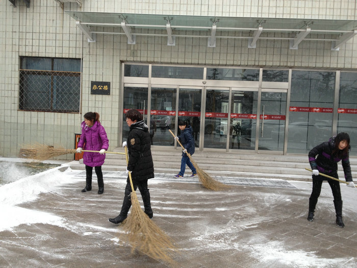 清晨6:00,大家拿着提前准备好的扫雪工具,分散到校园各个角落,相互协作,清扫着厚厚的积雪,汗水顺着脸颊流下,大家依然斗志昂扬。新采购的扫雪机派上了用场,扫雪工作更加快捷,很快为师生们开辟了一条方便之路。当晚又下了一夜的大雪,大家不怕辛苦,第二天清晨6:00再次集体出击,经过3个小时的奋战,将校园各路段的积雪清理干净。