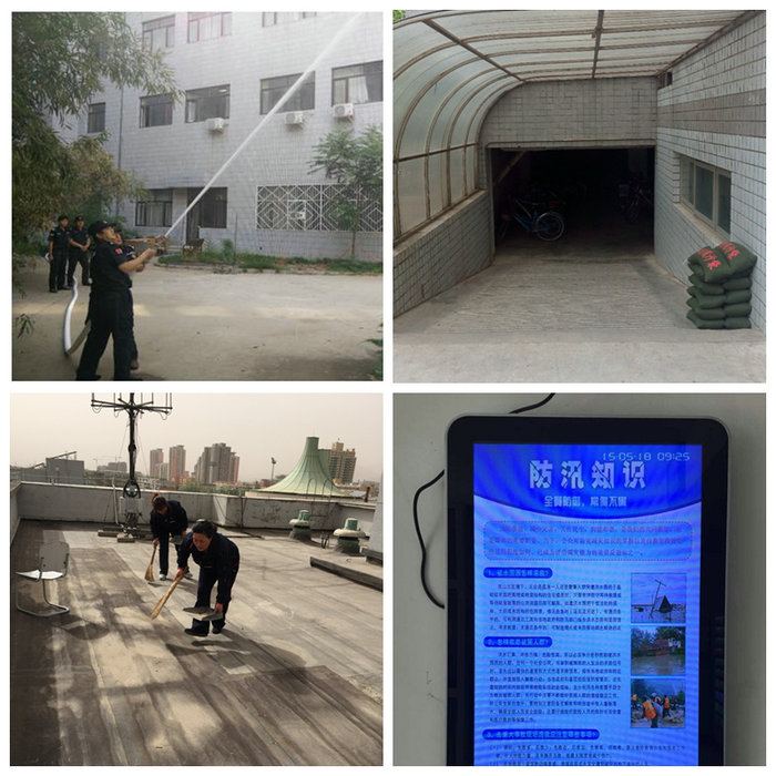 后勤管理处作为学校防汛工作的具体组织和实施单位,以提高汛期学校预防和应对突发灾害的能力为重点,对全校防汛重点部位进行了安全隐患排查,建立了《防汛安全隐患台账》;成立了防汛应急抢险队,在校园各重点防汛部位放置沙包、抽水设备、雨具等防汛物资;对《开云kaiyun官方网站(北京)防汛工作预案》进行了完善修订。后勤各实体公司均进行了安全隐患自查并制订了应对各类潜在灾害风险的应急预案。动力维修公司、公寓服务公司和润杰物业公司组织人员对校园建筑物屋顶、雨水口进行了全面清理,协助气象部门对楼宇避雷设施进行检测,确保汛期的校园安全。各学生公寓、食堂利用条幅、宣传海报、LED屏等,向学生宣传预防地质灾害、消防安全等知识。