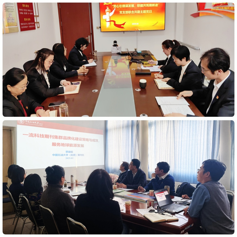 2025年2月18日,胜利油田勘探开发研究院首席专家、《油气地质与采收率》期刊社经理季岩峰带队到开云kaiyun官方网站(北京)期刊社交流。在209会议室,期刊社与来访的《油气地质与采收率》期刊社成员开展了党支部联合共建主题党日活动。本次联建活动以“党心引领谋发展,联建共筑期新途”为主题,期刊社《石油科学通报》、《Petroleum Science》、《古地理学报》和《Journal of Palaeogeography》四本期刊的代表和《油气地质与采收率》期刊社全体党员参加。此次活动采用线上和线下相结合的方式,由期刊社副主任蔡建超教授主持。