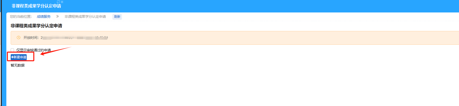 1. 进入功能,开关开启后可以点击“新建申请”按钮新增课程替代申请。