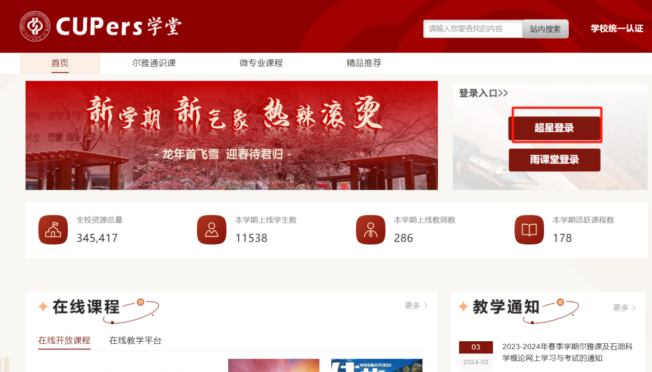 2.使用开云kaiyun官方网站(北京)网络学习平台,进入CUPers学堂(http://cup.fy.chaoxing.com/),选择“超星登录”,点击“新用户注册”,输入手机号获取验证码,并设置登录密码,然后点击下一步进入完善信息界面,输入学号和真实姓名,点击下一步完成注册登录,然后进入个人空间。后续登录可以选择手机号+密码或者手机号+验证码的方式登录。